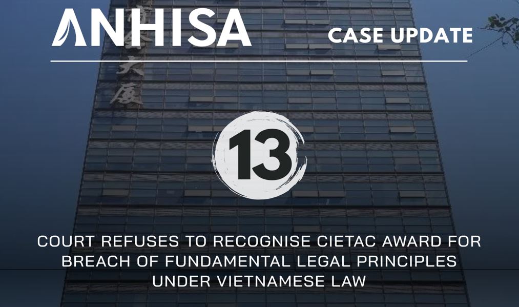 JNH Industry Company Limited v. Minh Son Construction and Commercial Joint Stock Company – Decision No. 03/2022/QDST-KDTM, Hai Phong City Court, 28 September 2022 This case concerns a request by a Chinese company, JNH Industry Company Limited (“JNH”), for recognition and enforcement in Vietnam of a foreign arbitral award rendered by the China International Economic… Continue reading COURT REFUSES TO RECOGNISE CIETAC AWARD FOR BREACH OF FUNDAMENTAL LEGAL PRINCIPLES UNDER VIETNAMESE LAW